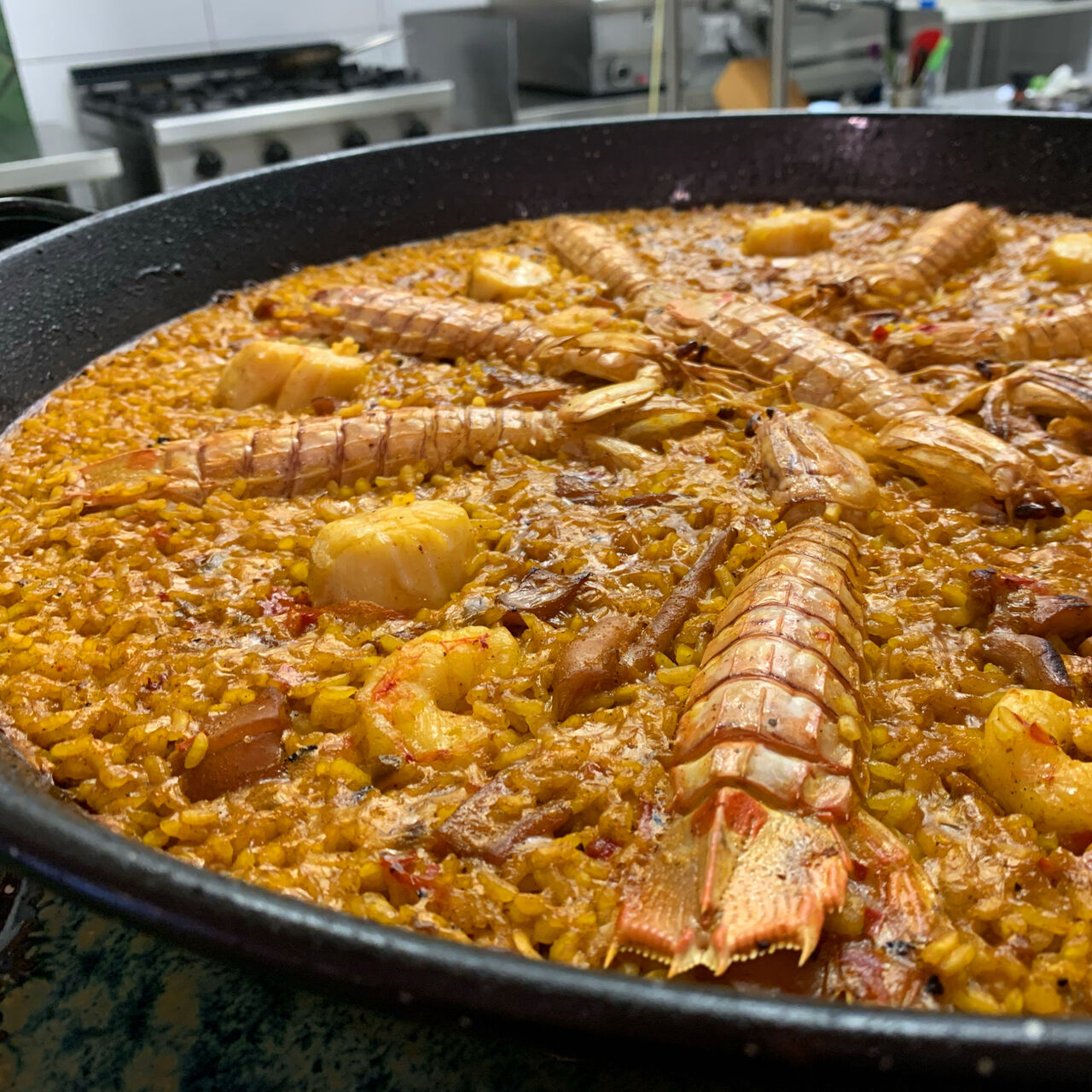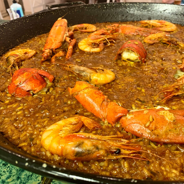 Arroz negro de chipirones y Cigalas con su Ajoaceite